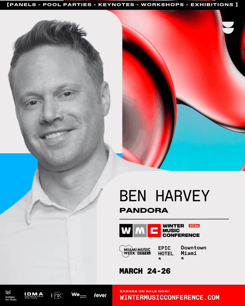 Ben Harvey began his career at Brown University’s commercial radio station WBRU and has been championing new music ever since. He has hosted and programmed across alt-rock, pop, and electronic, including K-Rock/NY, 92.3 NOW/NY, SiriusXM BPM, and SiriusXM Chill. He launched Palm Tree Records as president of Kygo’s joint venture with Sony Music. For the past five years he has led Dance & Electronic at Pandora, overseeing 100+ stations including flagship brands MIXR and aura: pandora chill. With more than two decades in music curation, Ben remains passionate about how dance records break—and who drives discovery.