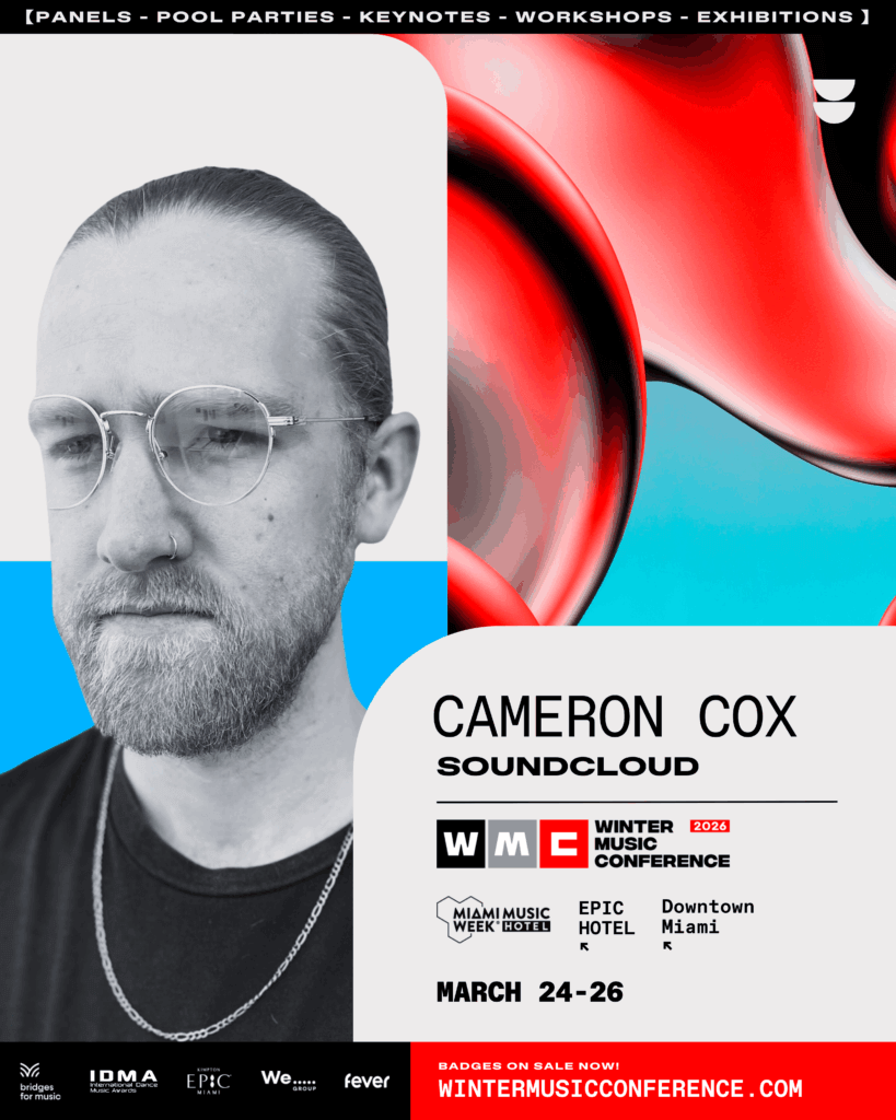 Cameron Cox is the Senior Manager of Artist & Label Relations and US Electronic Lead at SoundCloud, the world’s largest open audio platform. With a decade of experience across A&R, Label Relations, Commercial Partnerships, and Artist Relations, he focuses on developing innovative, artist-first programs that translate platform data, community engagement, and cultural trends into real-world growth for creators at every stage. Cameron has contributed key efforts in developing up and coming talent through SoundCloud’s flagship program known as ‘Ascending’, which highlights artists on the rise including Kenya Grace, Odetari, honestav, babychiefdoit, FattMack, Josh Baker, and more.