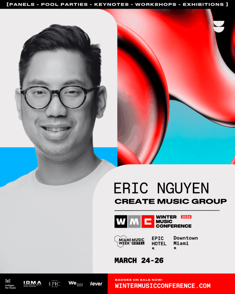 Eric Nguyen is the Senior Vice President of Mergers & Acquisitions at Create Music Group, where he leads a global team of over 20 professionals across M&A, investments, integration, and operations. Since joining Create, Eric has built the company’s M&A program from the ground up, overseeing the deployment of more than $250 million in acquisitions and contributing to a company valuation exceeding $1 billion. His notable transactions include label deals with Monstercat, !K7, deadmau5’s mau5trap, Enhanced, and Ostereo, as well as joint ventures with Pack Records, One Land Records, Elysian, and Void.