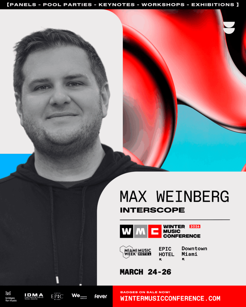 Max Weinberg is an entertainment industry executive who has spent his 15+ year career mixing his professional career in music, media, and marketing with his passion for technology, innovation and disruption. Currently, he’s the VP of Marketing for Interscope Records where he works with groundbreaking artists such as Anyma, mgk, DJ Snake, Zedd and more.